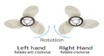 Propellers are either left or right handed. Left handed propellers rotate anti-clockwise as viewed from behind the boat looking towards the stern. Right hand propellers turn clockwise.