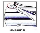 Cupping is a slight up turn on the trailing edge of the propeller. Cupping will reduce cavitation , increase acceleration, reduce propeller vibration, and give better propeller "grip". Cupping is also the equivalent of increasing the pitch of the propeller by approximately one inch and this should therefore be taken into consideration. If you would like your propeller cupped this is one of the many services that we can provide.
